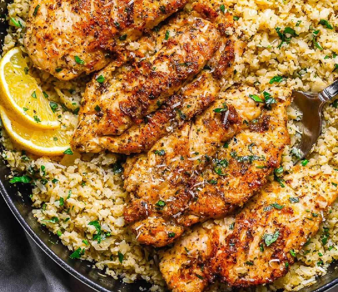 15-Minute Garlic Butter Chicken with Parmesan Cauliflower Rice from eatwell101