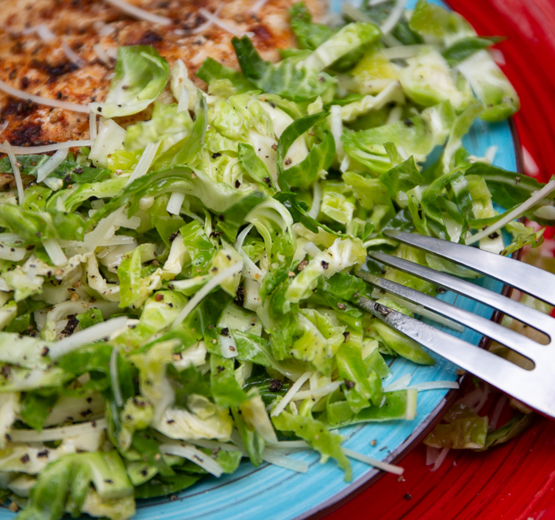Apple Cider Shaved Brussel Sprout Salad from Wicked Stuffed